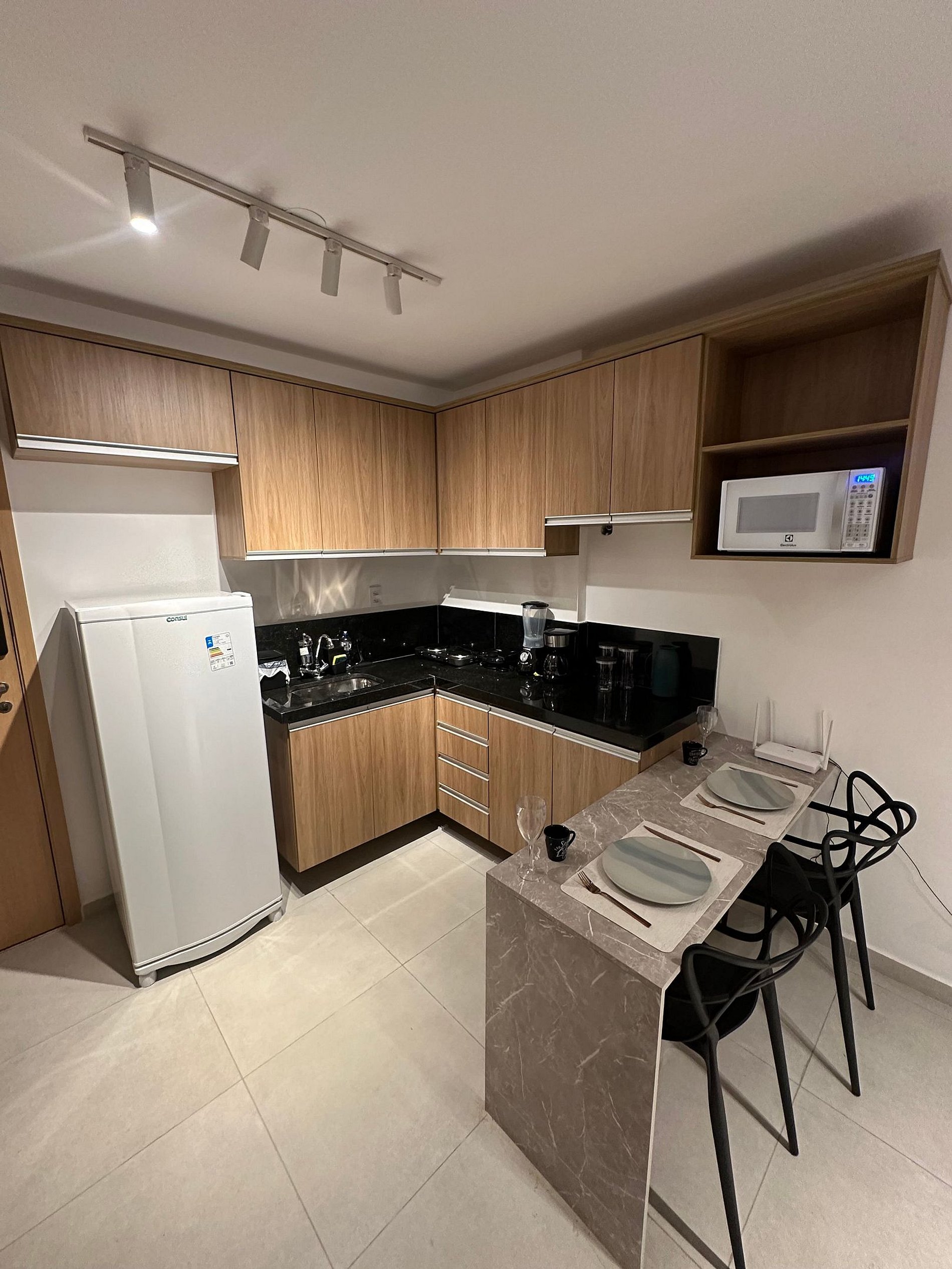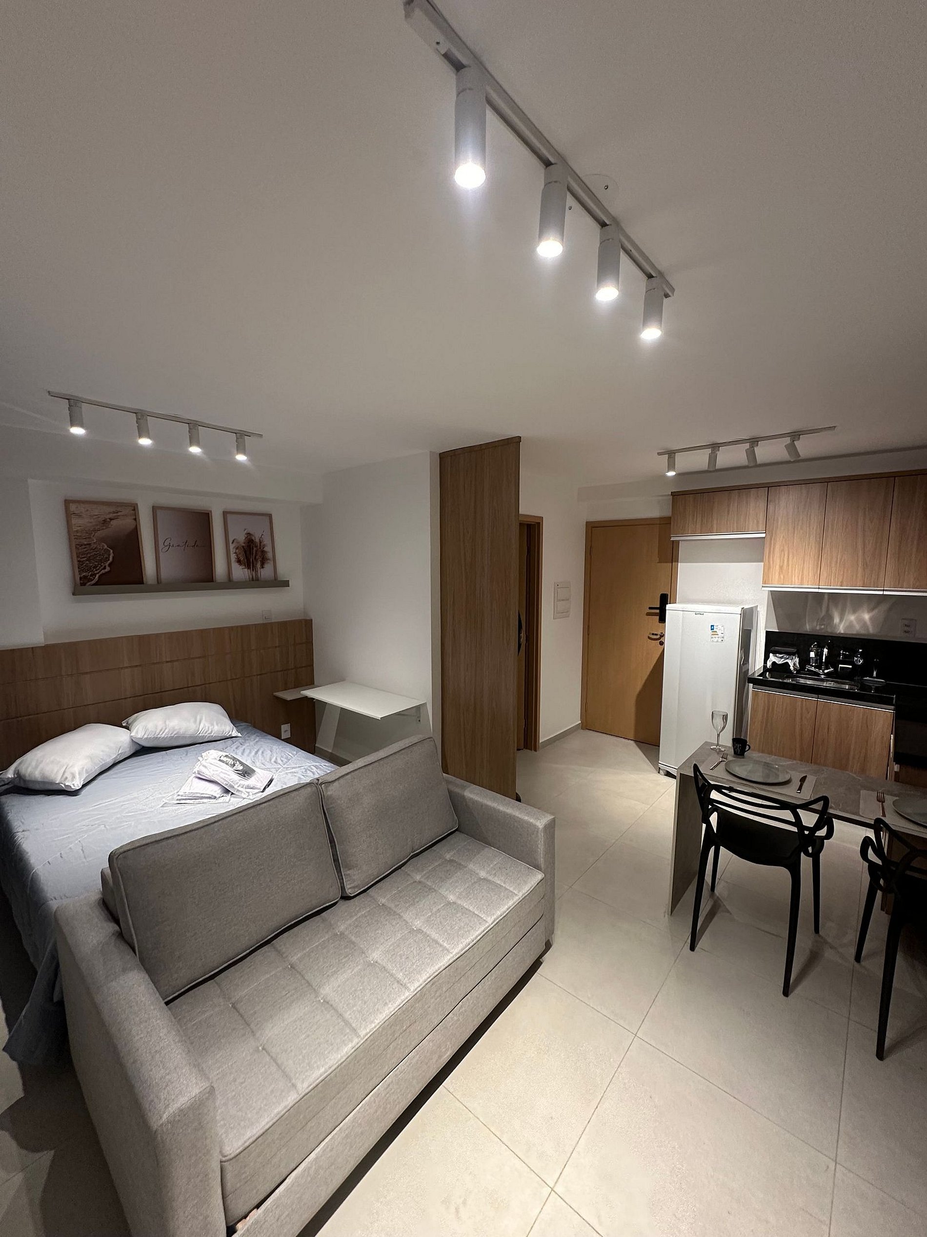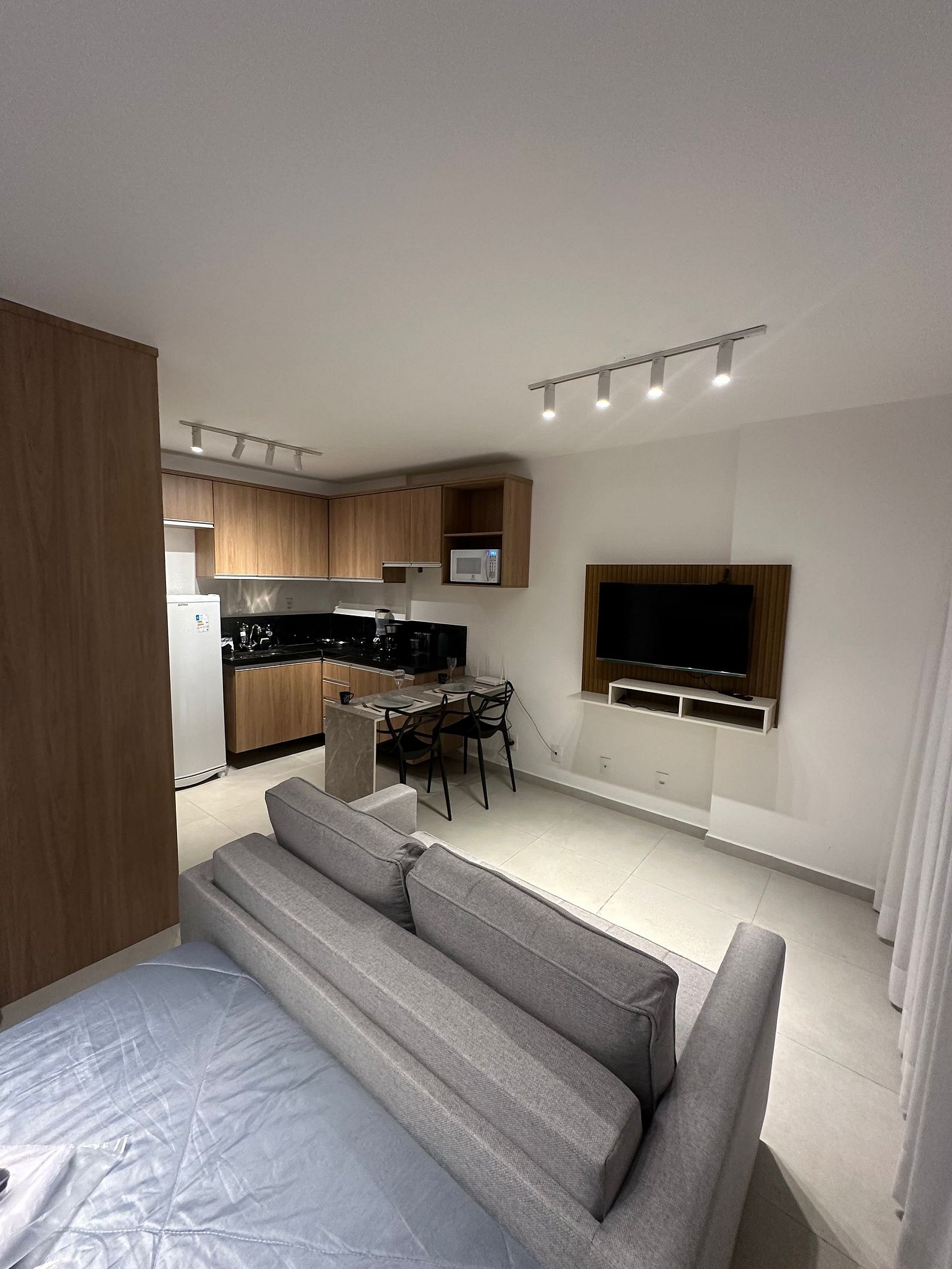 Curta uma experiência elegante neste lugar bem localizado, próximo a supermercados, academias, bancos, padarias e farmácias. Estacionamento no local pago a parte Studio equipado com móveis planejados Italínea no estilo Premium, com roupeiro, coz, sala e bnh. Área de lazer com piscina e churrasq. Lavanderia OMO Wifi Smartv 42 tubo gir qto/sala Fechadura digital Cooktop 2 bc Forno Microondas Geladeira Sanduicheira Liquidificador Sofá Colchão de Espuma tecido fibra bambu