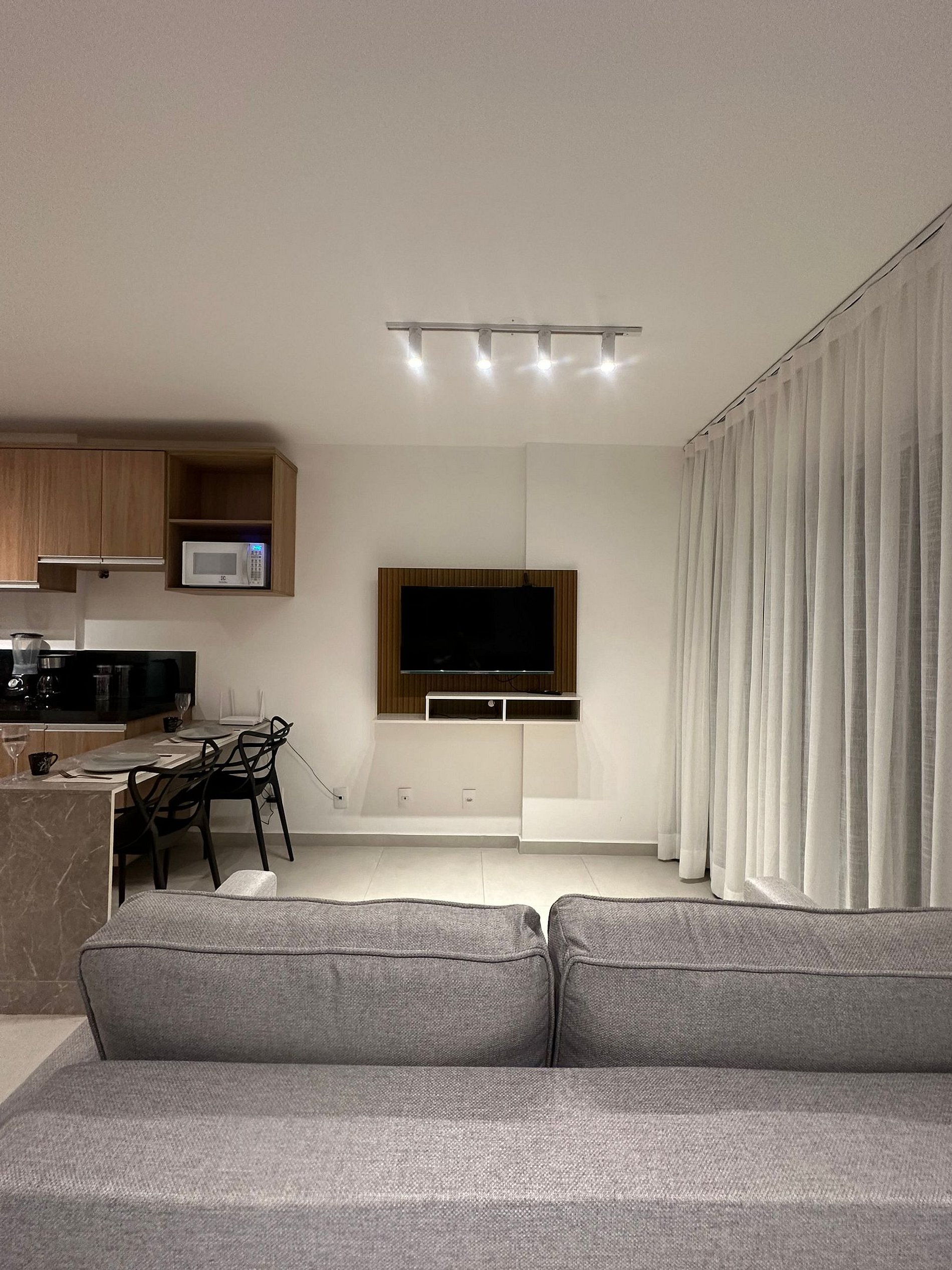 Curta uma experiência elegante neste lugar bem localizado, próximo a supermercados, academias, bancos, padarias e farmácias. Estacionamento no local pago a parte Studio equipado com móveis planejados Italínea no estilo Premium, com roupeiro, coz, sala e bnh. Área de lazer com piscina e churrasq. Lavanderia OMO Wifi Smartv 42 tubo gir qto/sala Fechadura digital Cooktop 2 bc Forno Microondas Geladeira Sanduicheira Liquidificador Sofá Colchão de Espuma tecido fibra bambu