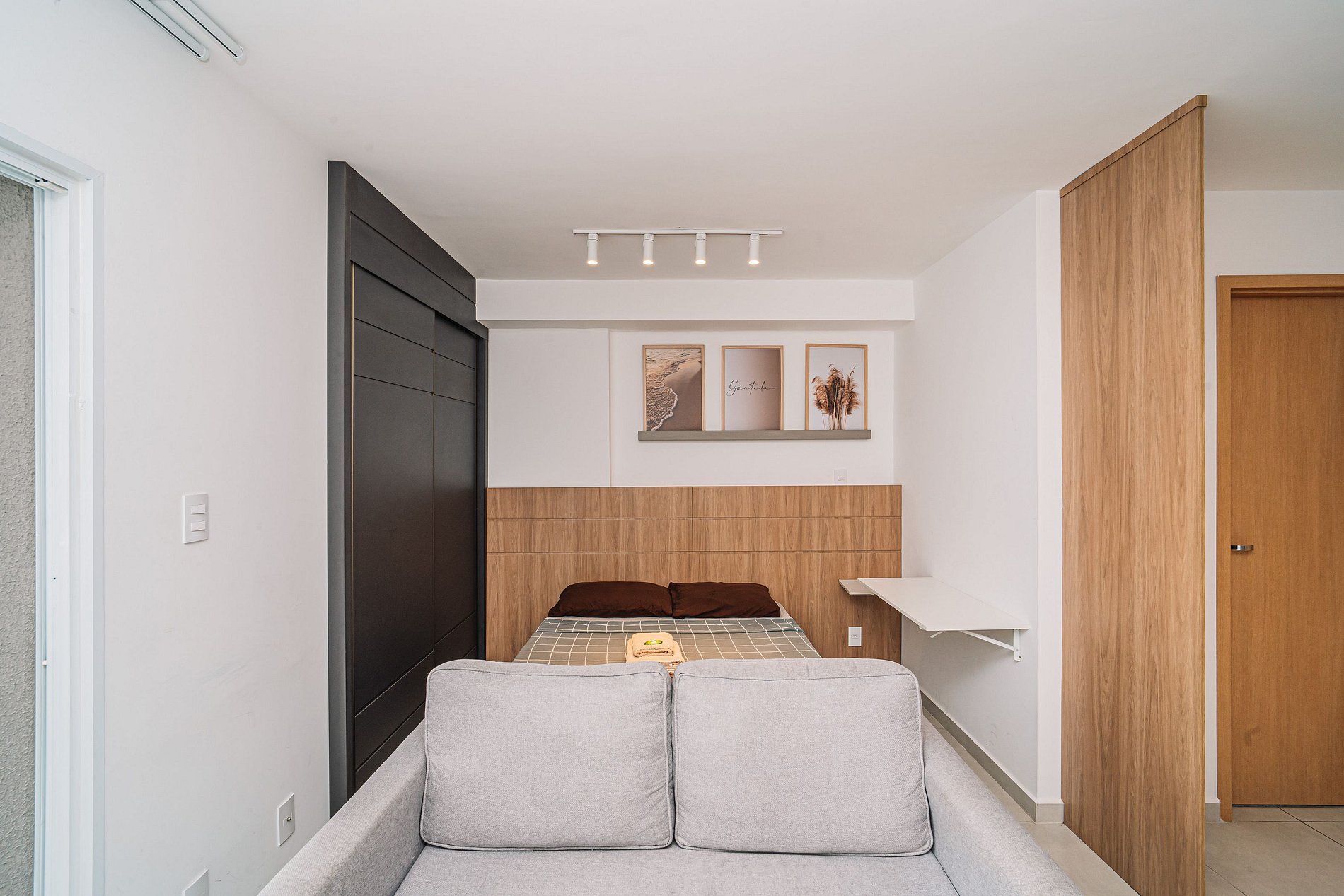 Curta uma experiência elegante neste lugar bem localizado, próximo a supermercados, academias, bancos, padarias e farmácias. Estacionamento no local pago a parte Studio equipado com móveis planejados Italínea no estilo Premium, com roupeiro, coz, sala e bnh. Área de lazer com piscina e churrasq. Lavanderia OMO Wifi Smartv 42 tubo gir qto/sala Fechadura digital fogão 2 bc Forno Microondas Geladeira Sanduicheira Liquidificador Sofá Colchão de Espuma Orthocrin