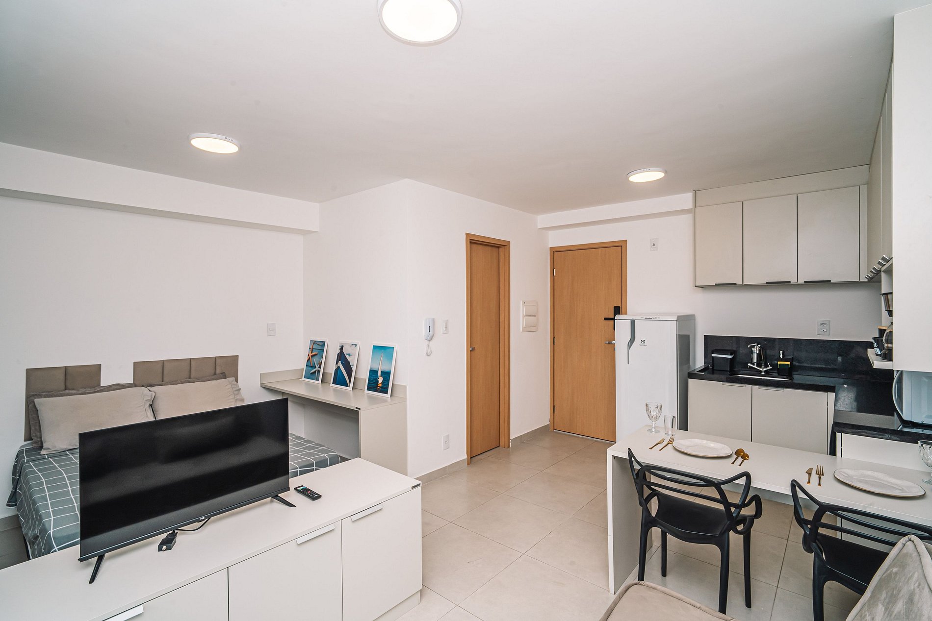 Curta uma experiência elegante neste lugar bem localizado, próximo a supermercados, academias, bancos, padarias e farmácias. Estacionamento no local pago a parte Studio equipado com móveis planejados Italínea no estilo Premium, com roupeiro, coz, sala e bnh. Área de lazer com piscina e churrasq. Lavanderia OMO Wifi Smartv 40 Fechadura digital Cooktop 2 bc Microondas Geladeira Sanduicheira Liquidificador Sofá Colchão de Espuma Orthocrin