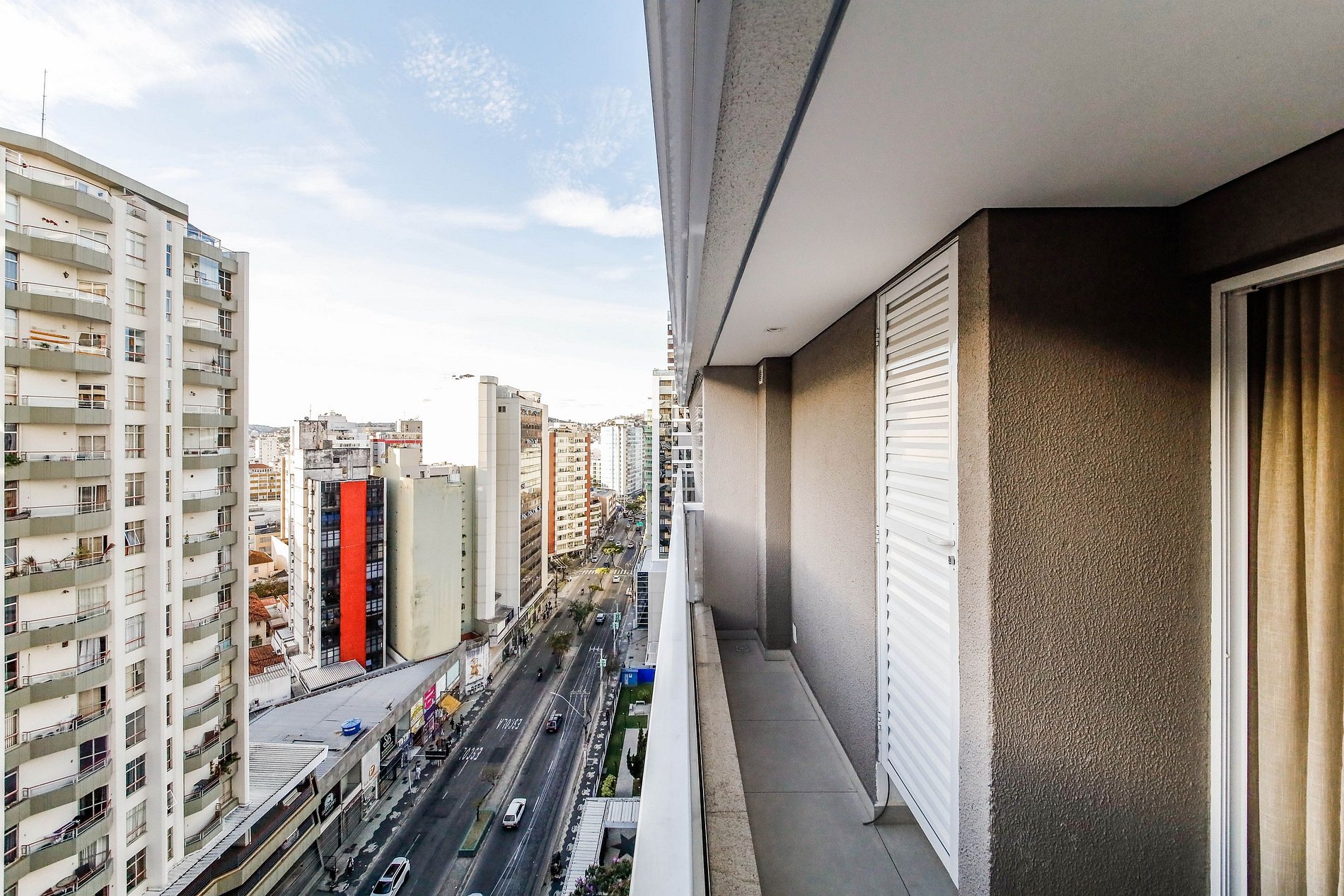 Espaço equipado para uma pessoa morar tranquilamente e com bastante conforto. Cozinha totalmente equipada com eletrodomésticos, equipamentos, etc. Sala com sofá e TV de 43 com tubo giratório, permitindo assistir TV deitado ou sentado no sofá. Varanda com vista para a Avenida Itamar Franco e Avenida Rio Branco. Tanque e armário para guardar equipamentos de limpeza. Banheiro com armário, box e chuveiro especial. Fechadura digital, com senhas, sem necessidade de chaves no apartamento e também no prédio.