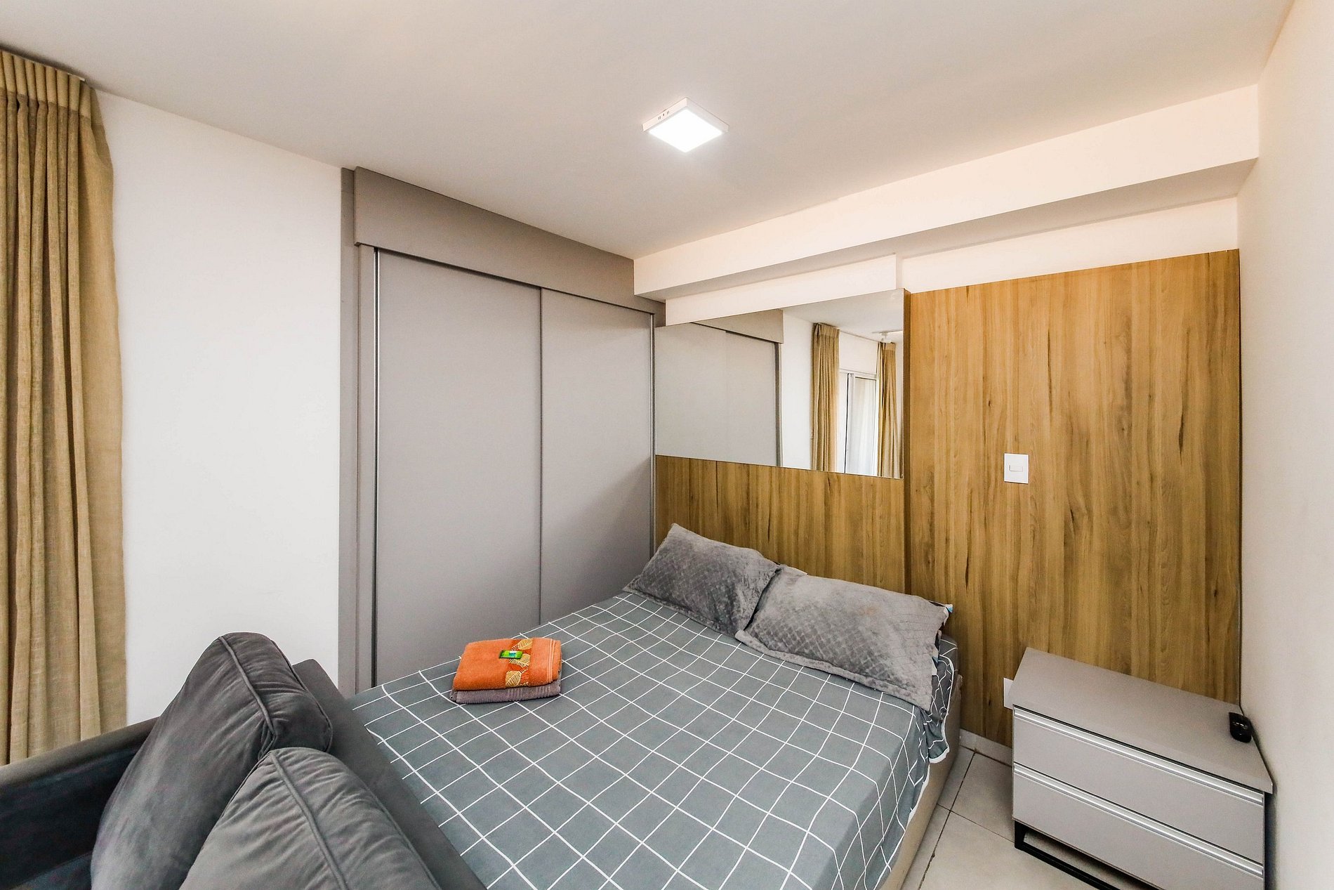 Curta uma experiência elegante neste lugar bem localizado, próximo a supermercados, academias, bancos, padarias e farmácias. Estacionamento no local pago a parte Studio equipado com móveis planejados Italínea no estilo Premium, com roupeiro, coz, sala e bnh. Área de lazer com piscina e churrasq. Lavanderia OMO Wifi Smartv 40 Fechadura digital Cooktop 2 bc Forno Microondas Geladeira Sanduicheira Liquidificador Sofá Colchão de Espuma Orthocrin