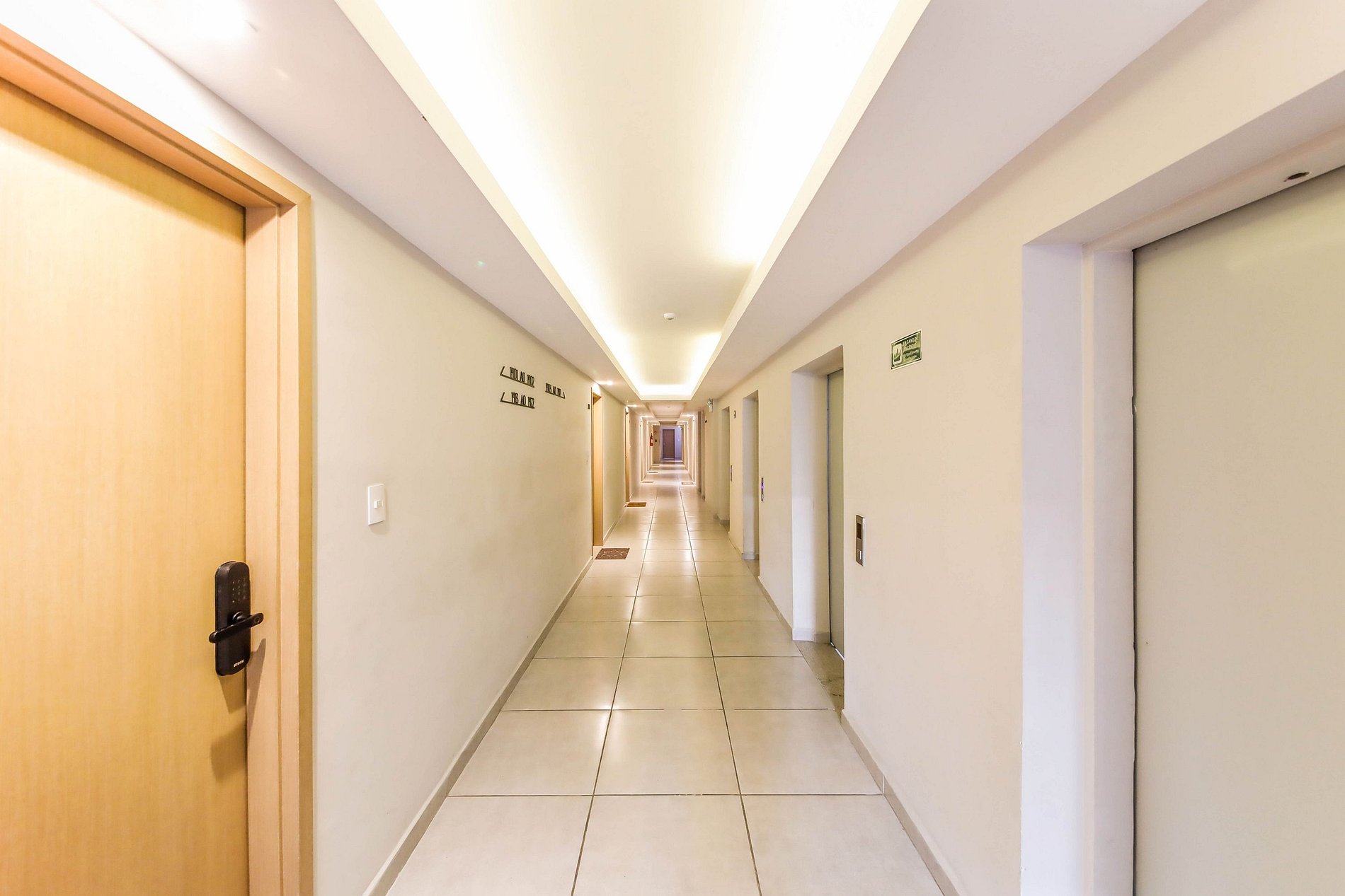 Acesso ao apartamento por meio de fechadura eletrônica, onde o hóspede digita sua senha para entrar no apartamento.