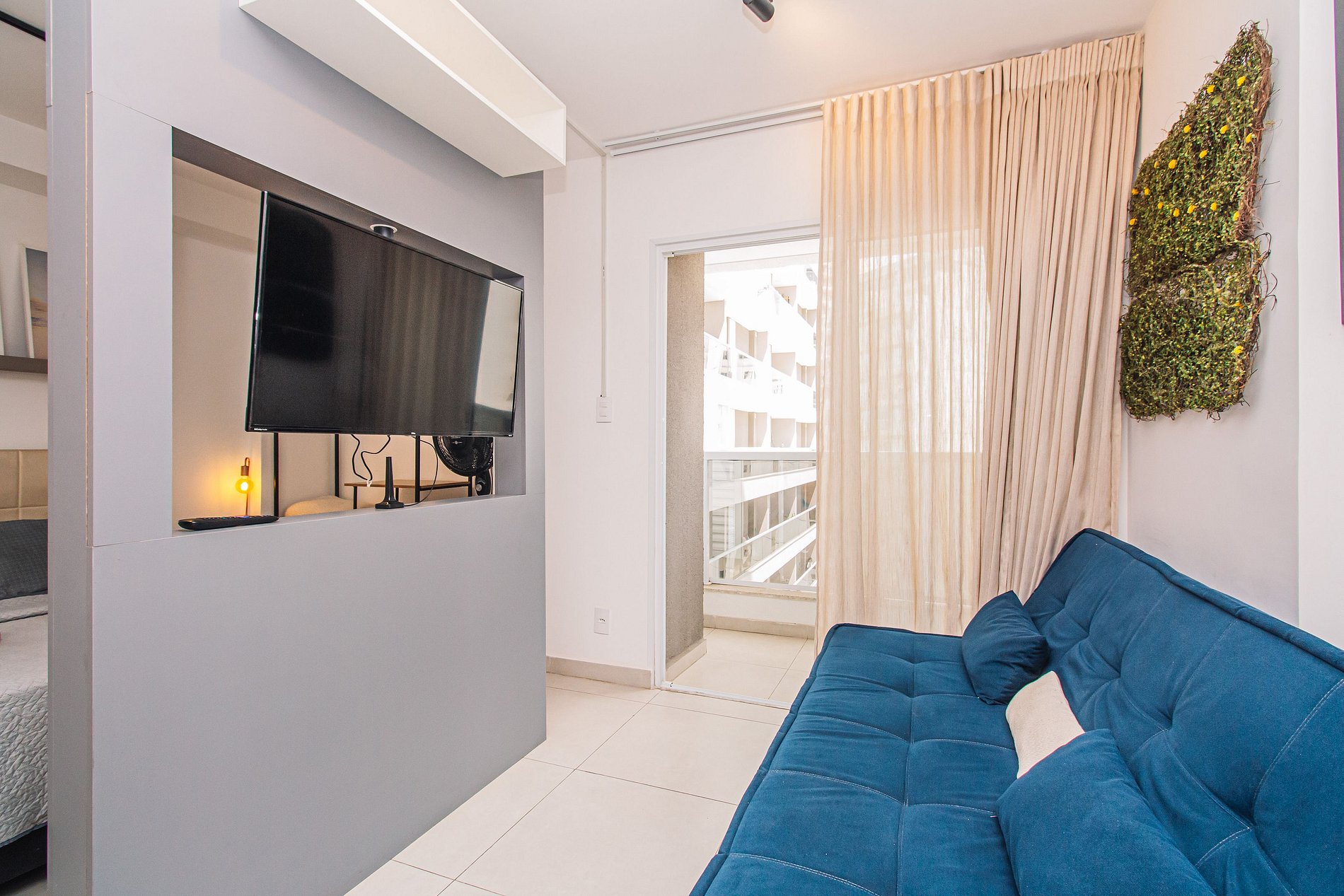 Curta uma experiência elegante neste lugar bem localizado, próximo a supermercados, academias, bancos, padarias e farmácias. Estacionamento no local pago a parte Studio equipado com móveis planejados Italínea no estilo Premium, com roupeiro, coz, sala e bnh. Área de lazer com piscina e churrasq. Lavanderia OMO Wifi Smartv 40 Fechadura digital Cooktop 2 bc Forno Microondas Geladeira Sanduicheira Liquidificador Sofá Colchão de Espuma Orthocrin