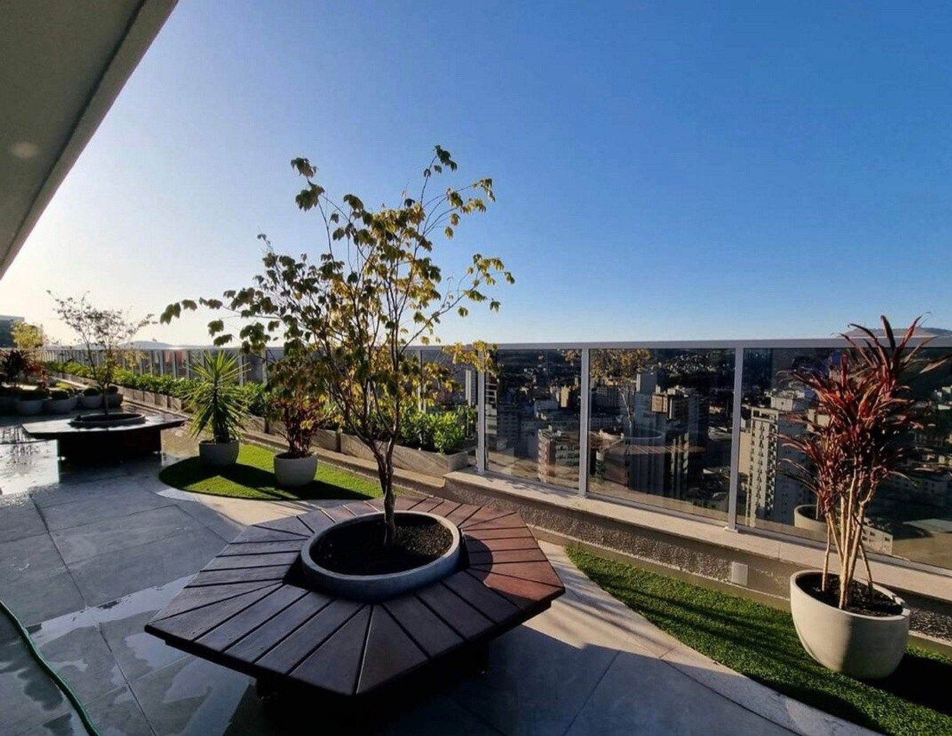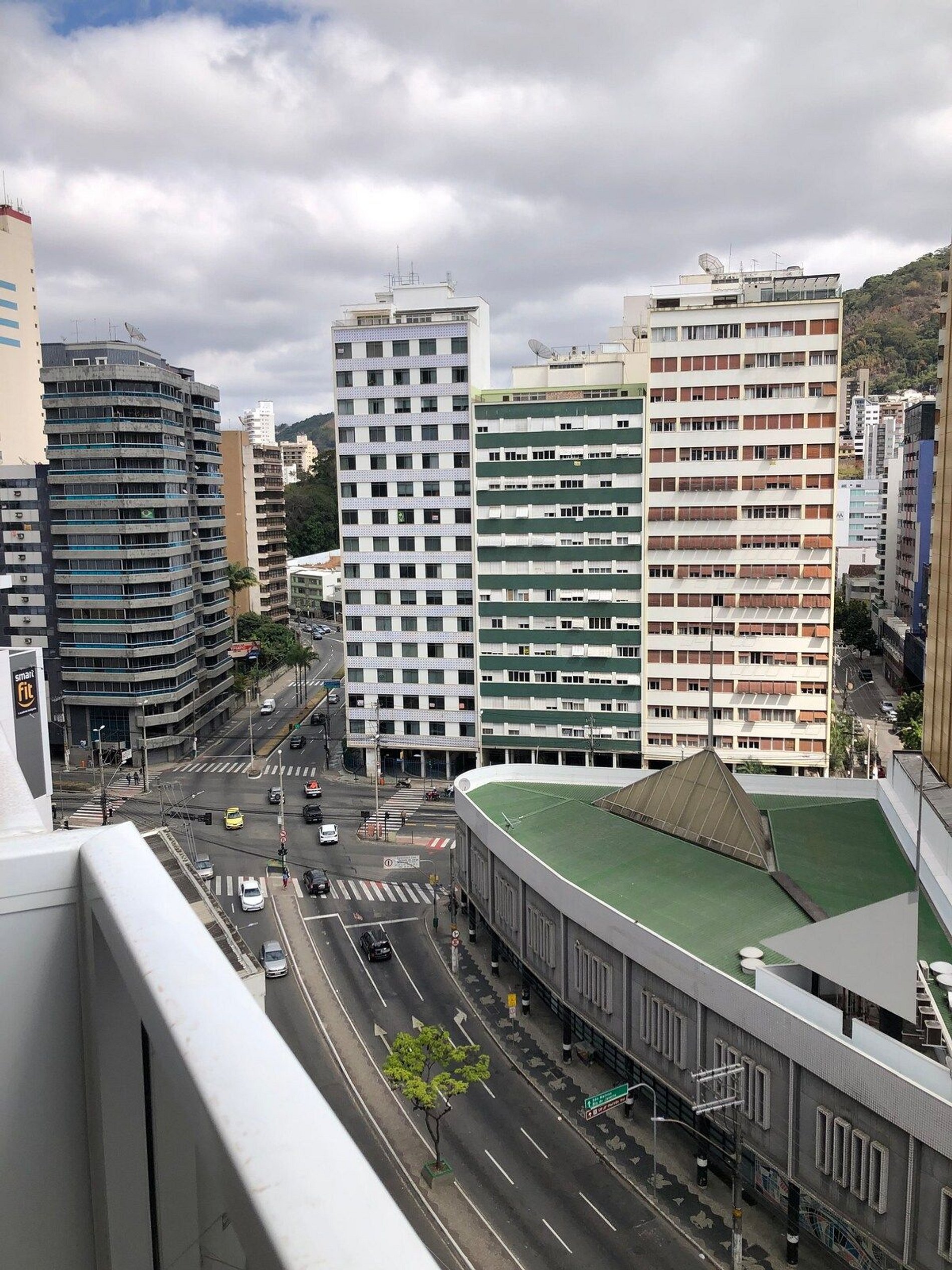 Espaço equipado para uma pessoa morar tranquilamente e com bastante conforto. Cozinha totalmente equipada com eletrodomésticos, equipamentos, etc. Sala com sofá e TV de 43 com tubo giratório, permitindo assistir TV deitado ou sentado no sofá. Varanda com vista para a Avenida Itamar Franco e Avenida Rio Branco. Tanque e armário para guardar equipamentos de limpeza. Banheiro com armário, box e chuveiro especial. Fechadura digital, com senhas, sem necessidade de chaves no apartamento e também no prédio.