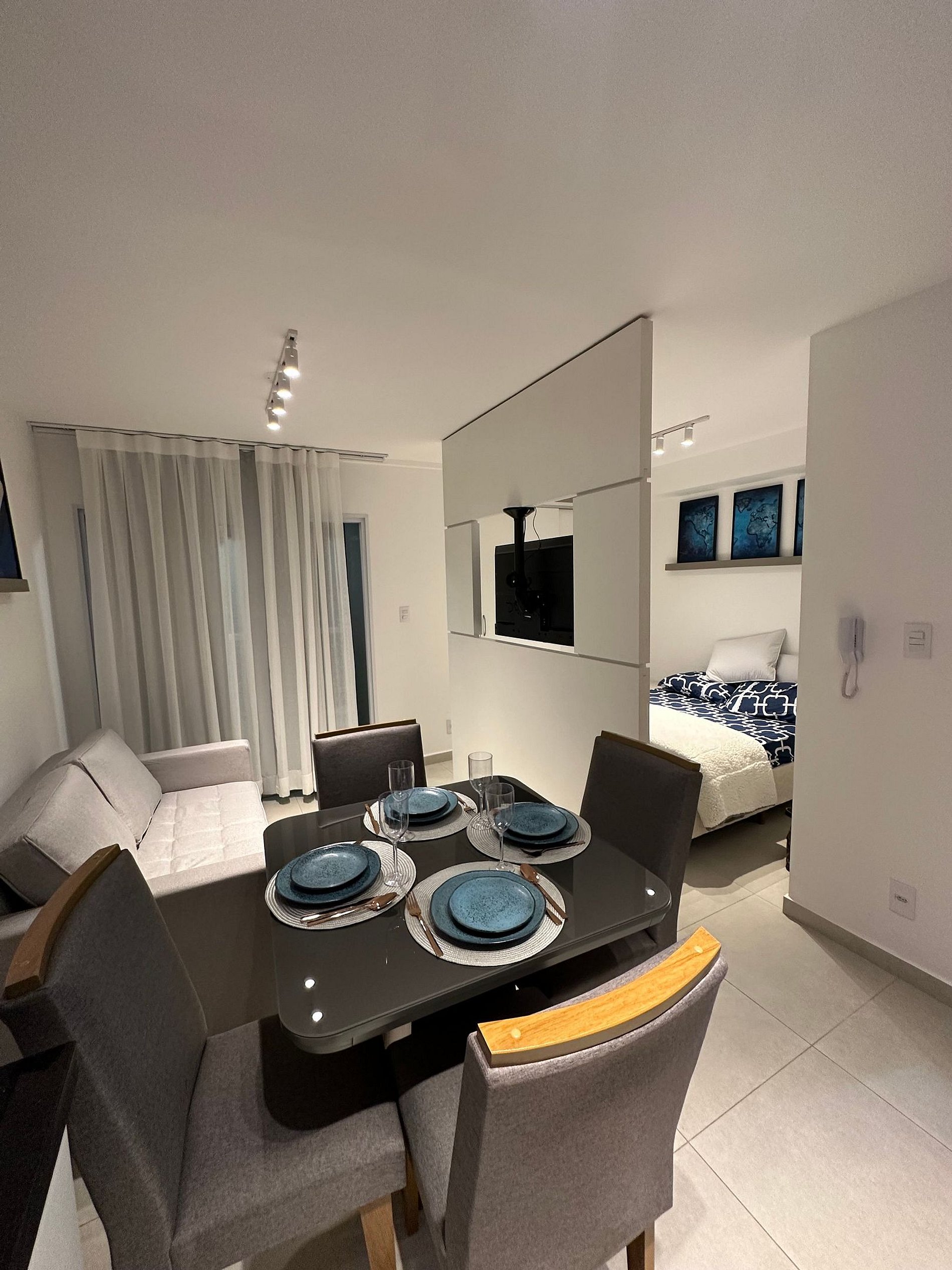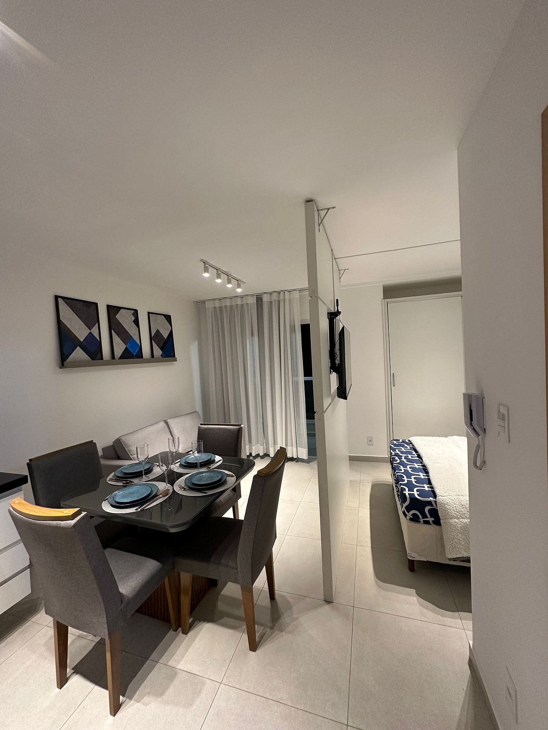 studio equipado e mobiliado. pronto para morar. do móvel planejado ao garfo e faca.